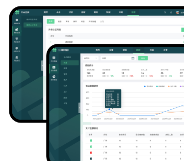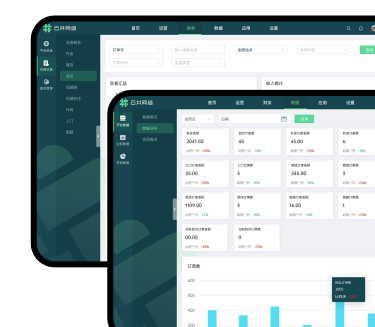 总站运营后台掌握平台所有数据,统一配置系 统信息,打造企业品牌形象。 多维度经营数据统计分析,帮助管理人员了解 经营概况,及时调整经营策略。